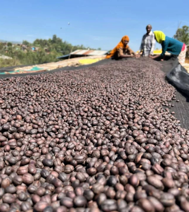 Koffie Arabica cultivé par de petits producteurs à Bensa, Sidama, Éthiopie. Variétés 74158 et 74160, issues de sélections sauvages du centre de recherche de Jimma. Ce lot est 100 % naturel et Anaerobic Natural, récolté à la main, trié et séché 20 jours sur lits surélevés, pour un café au profil fruité et complexe, typique de Sidama.