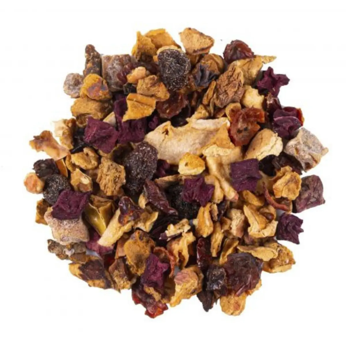 Ingrediënten : Appel (49%), druif (druif, plantaardige olie), dadel (dadel, rijstmeel), rozenbottel, rode biet, kaneelstokjes, natuurlijk aroma, appel (4%), vanille. Premiummix met ingrediënten afkomstig uit duurzame landbouw en natuurlijke aroma’s.